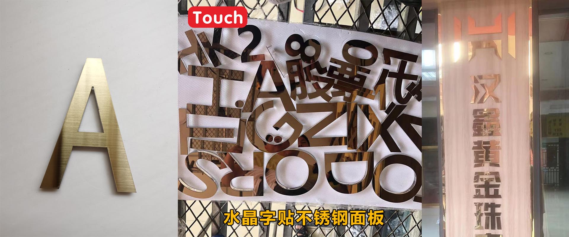除此之外,水晶字还可以在透明亚克力上贴金属面板。金属面板的材质可以参考金属字!