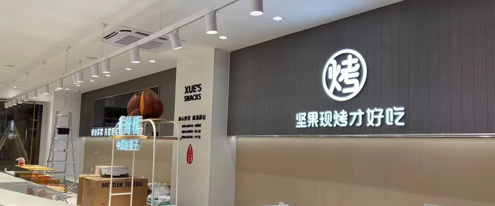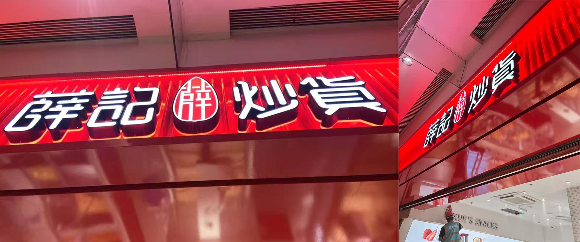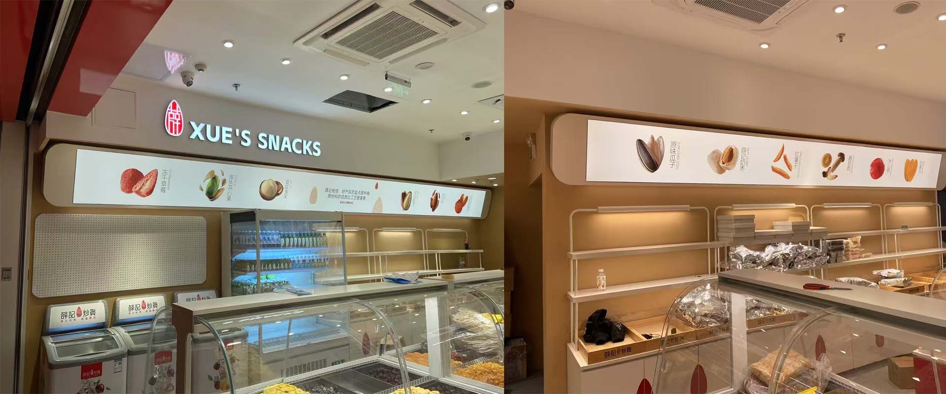 薛记炒货在柳州开了两家店,一是万象城店,二是五星店,两个店的广告都是我们制作的。