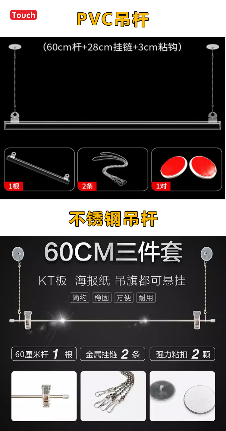吊旗材质有:铜版纸、PP纸对裱、KT板、PVC板